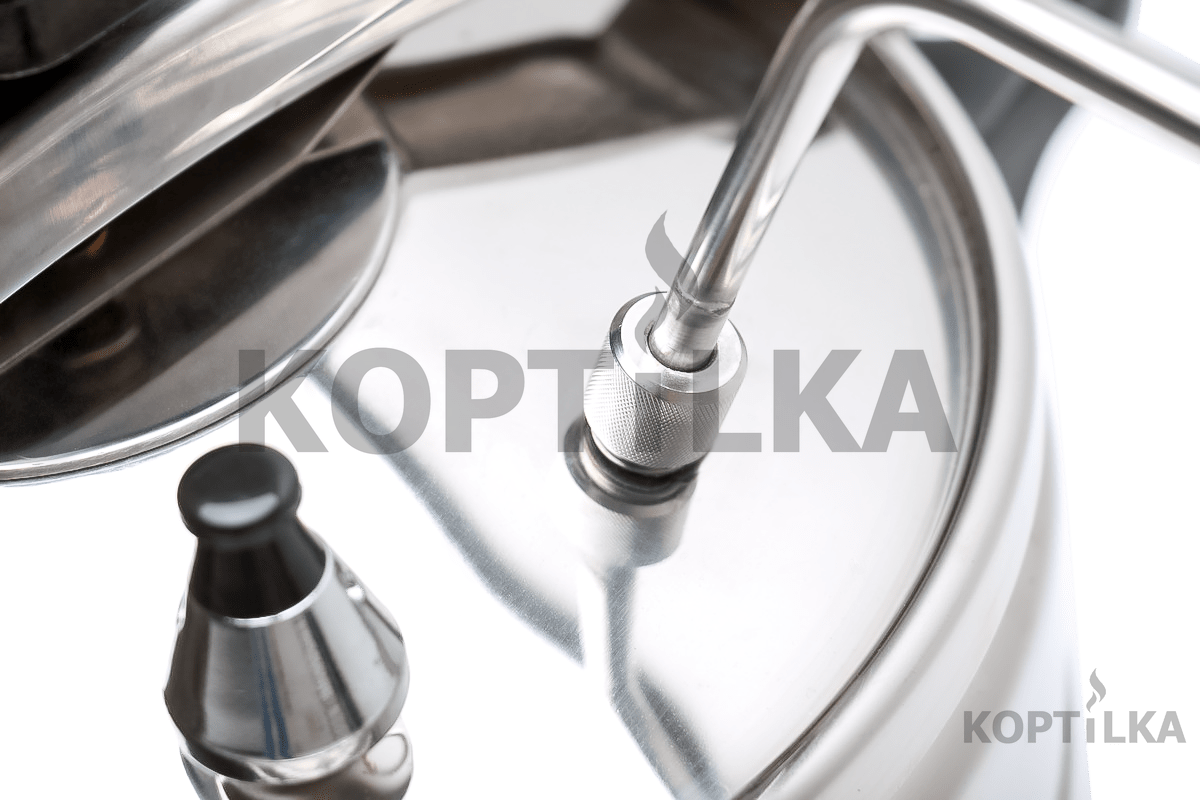 1. Насадка-дистиллятор фиксируется на крышку автоклава при помощи накидной гайки, в аппарат наливается брага, холодильник-змеевик подключается к водопроводу.